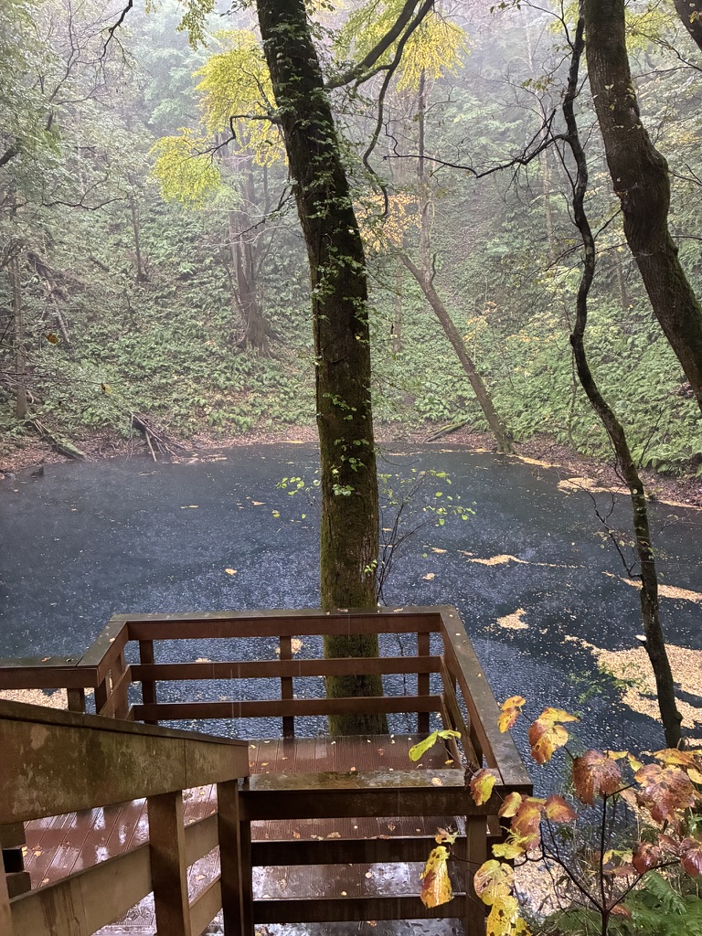 朝から雨で、「小岳トレッキング」が予定変更。青森の十二湖にはいつか行ってみたいと思っていたのでわくわくしてました。