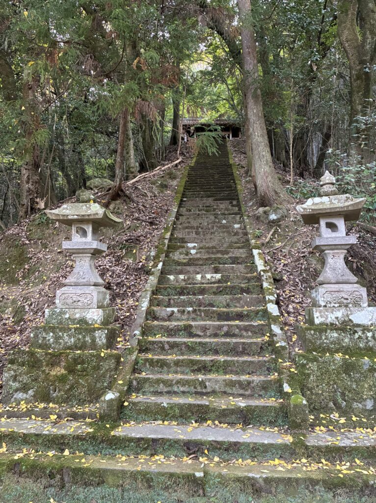 御霊紅葉(ごりょうもみじ) 急な石段。反対側にはきれいな紅葉。