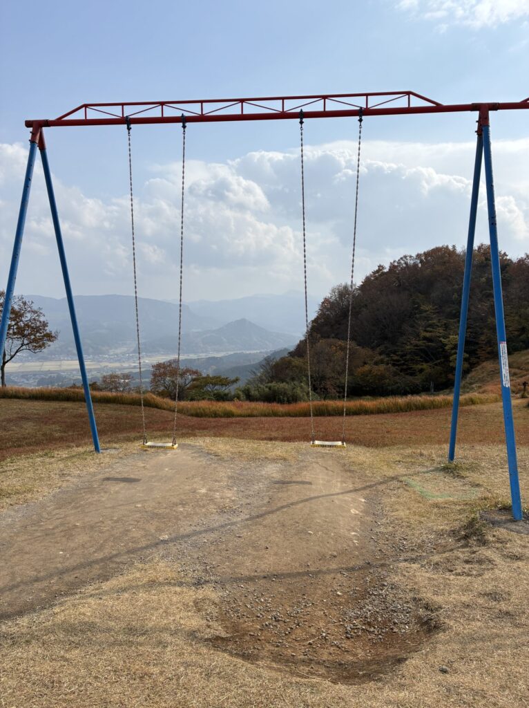 切株山↓ なが〜い鎖のぶらんこ。ゆっくり揺れる。眺めがすごくいい。